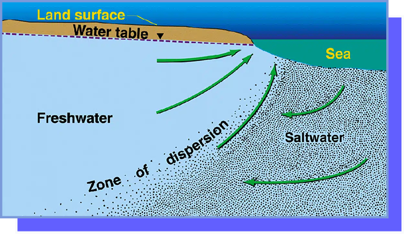 Graphic of Coastal Seawater Intrusion. Pic Credit - California Water Science Center.